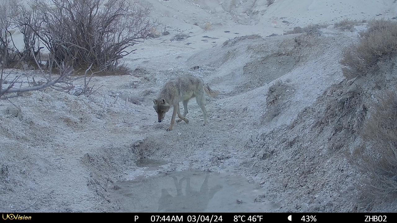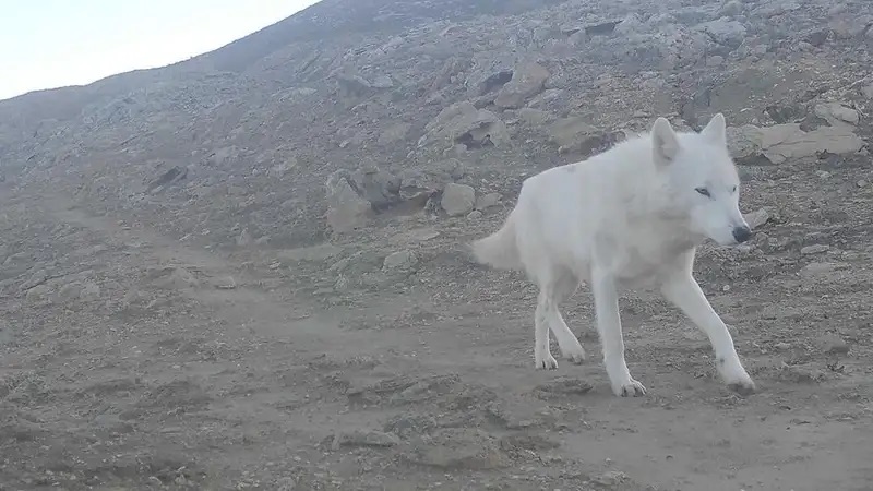 Белый волк снова попал в объектив фотоловушки в Мангистау