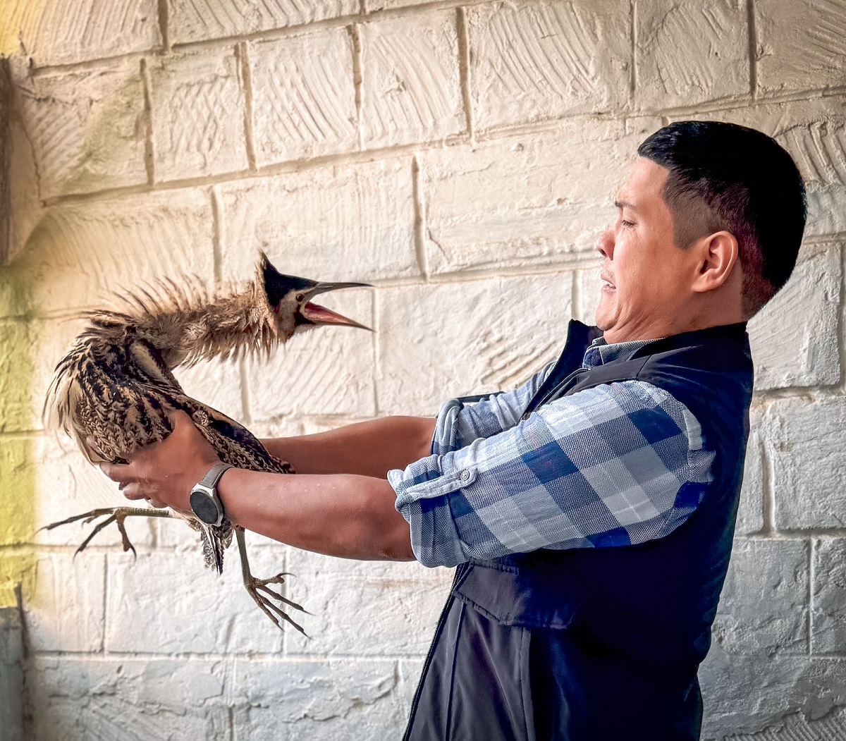 После случая с фламинго жители города все чаще начали обращаться ко мне по многим вопросам, касающихся попавших в беду птиц. Прямо с утра очередная просьба о помощи от жителей многоэтажки – птица (большая выпь) терроризировала целый подъезд, пугая и нападая на всех, кто к ней приблизится. Птица оказалась довольно строптивой, - рассказал Азамат Сарсенбаев.