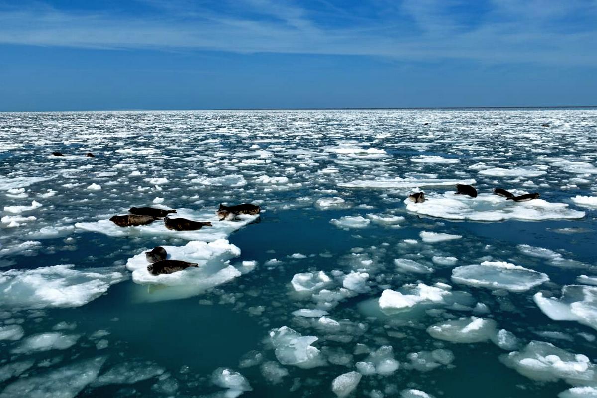 По словам Андрея Руцкого, в минувшие выходные с вертолета и дрона проводился мониторинг текущей ситуации с каспийскими тюленями у месторождений Каламкас и Каражанбас. Как пояснил специалист, море еще сковано льдом, но в связи со значительным потеплением он уже тает и расходится.