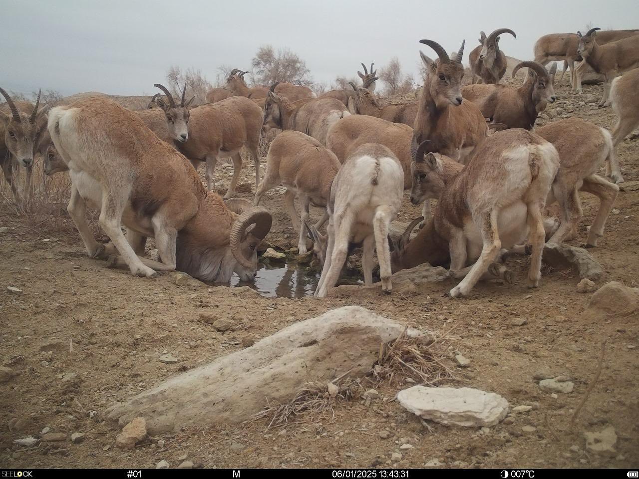 Устюртский государственный заповедник продолжает получать уникальные кадры животных. На этот раз фотоловушка запечатлела устюртских уриалов на водопое «Сарыбулак». Устюртский уриал — подвид горного барана, занесённый в Красную Книгу. Присутствие устюртских уриалов на территории заповедника свидетельствует о значительном росте численности вида, обогащает природные экосистемы и отражает результативную работу по сохранению животного мира.