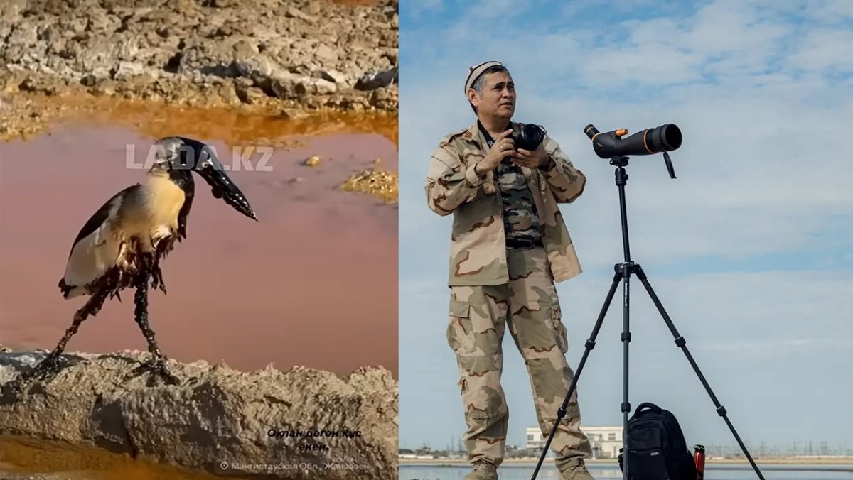 Адильбек Козыбаков пояснил, что после изучения видеозаписи с птицей, снятой на территории одного из нефтяных месторождений, ему удалось определить, что это большая выпь. Он отметил, что в отличие от цапли, выпь отличается характерным поведением — покачиваясь из стороны в сторону, она вытягивает клюв вверх, что и является её отличительной чертой.
