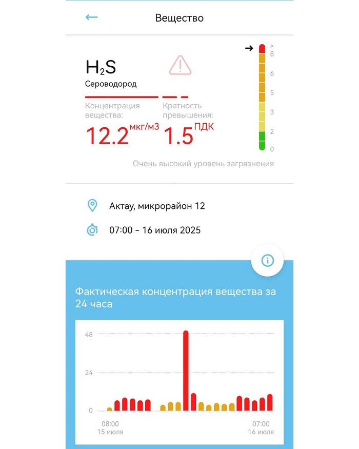 Судя по датчикам, это очень высокий уровень концентрации. Рано утром вонь была ужасная как будто где-то протухли куриные яйца, - пожаловался житель Актау.