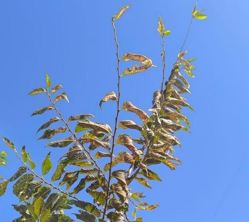 Жители разных микрорайонов сообщают о массовой гибели карагачей: часть листьев  деревьев полностью съедены тлей, на других - сквозные дырки.