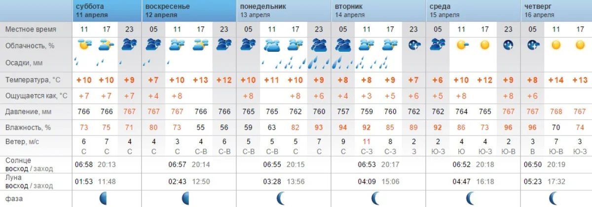 Сайт rp5 также прогнозирует облачность и небольшие осадки.