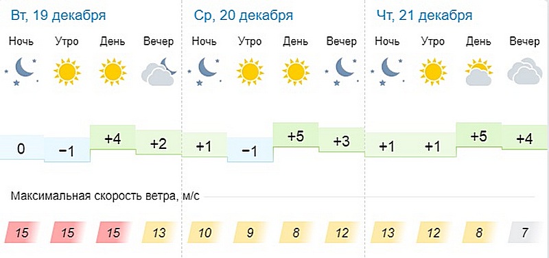 Средняя температура воздуха днём 19 декабря составит +4°С.