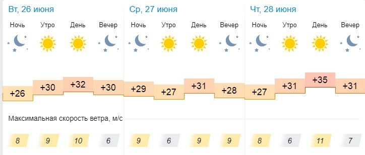 Средняя температура воздуха днём 26 июня составит +32°С.