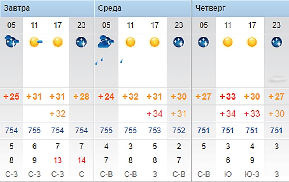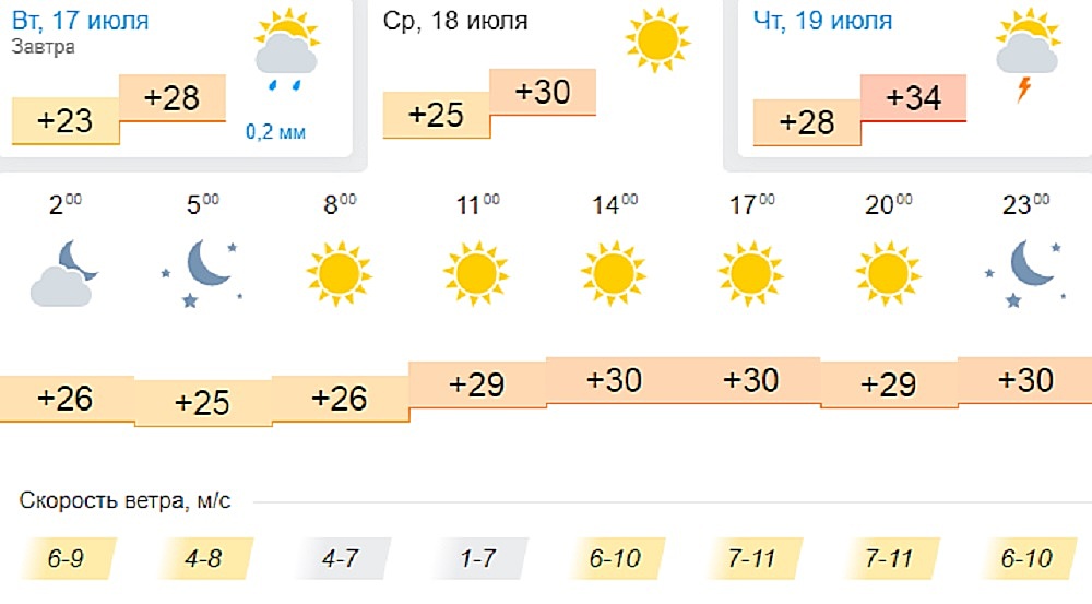 В среду, 18 июля, температура воздуха днём составит +32°С, ночью +30°С. Ветер 5-8 м/с.