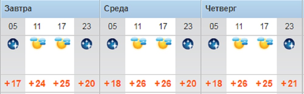 В среду, 22 августа, воздух прогреется до +26°С, ночью до +20°С. Ветер 5-10 м/с. Возможна переменная облачность.