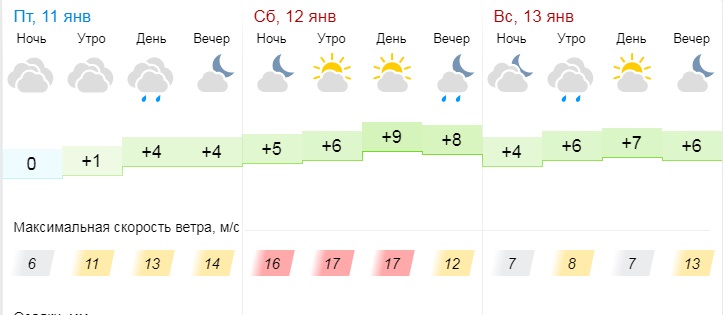 Cегодня, 11 января, возможны осадки. Средняя температура воздуха днём составит +4°С.