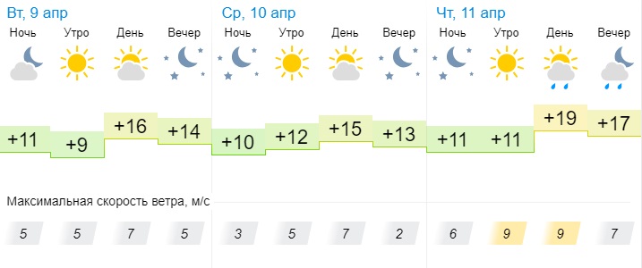 В четверг, 11 апреля, по прогнозам синоптиков, в Актау будет малооблачно и возможен небольшой дождь. Средняя температура воздуха днём составит +19°С, ночью +17°С. Ветер 6-9 м/с.
