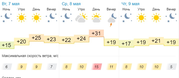 В среду, 8 мая, в Актау утром будет малооблачно, возможна гроза. Средняя температура воздуха днём составит +31°С, ночью +19°С. Ветер 8-15 м/с.