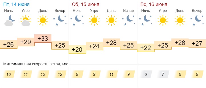 rp5.kz, ожидается солнечная погода. Температура воздуха днём составит +35°С, ночью +23°С. Ветер 3-14 м/с.