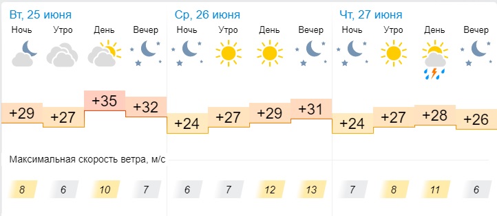 Во вторник, 25 июня, средняя температура воздуха днем составит +35°С.