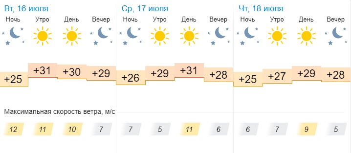 Днём 16 июля столбики термометров поднимутся до отметки в +31°С.