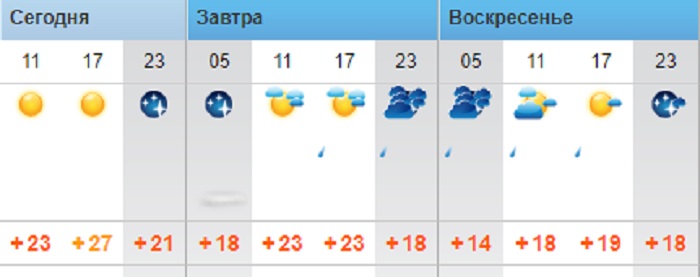rp5.kz, ожидается солнечная погода. Температура воздуха составит +27°С, ночью +21°С. Ветер 1-11 м/с.