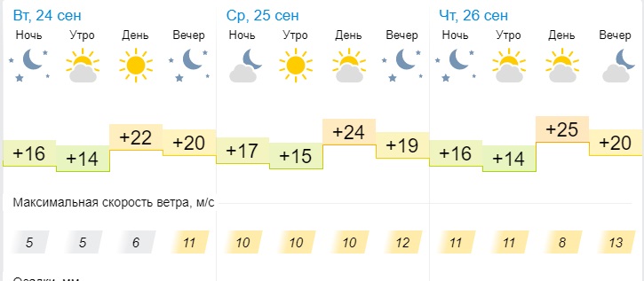 В воскресенье, 29 сентября, по прогнозам синоптиков, будет малооблачная погода. Температура воздуха днём составит +18°С, ночью +15°С. Ветер 5-8 м/с.