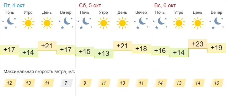 В пятницу, 4 октября, по данным rp5.kz, ожидается ясная погода. Температура воздуха днём составит +22°С, ночью +15°С. Ветер 5-12 м/с.