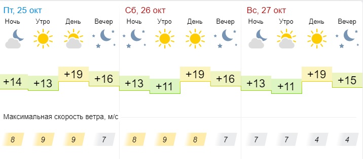В пятницу, 25 октября, по данным rp5.kz, ожидается ясная погода. Температура воздуха днём составит +22°С, ночью +14°С. Ветер 2-4 м/с.
