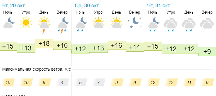 По данным rp5.kz, 29 октября утром будет ясно, после обеда возможен дождь. Температура воздуха составит +20°С днём, ночью +13°С. Ветер 5-10 м/с.