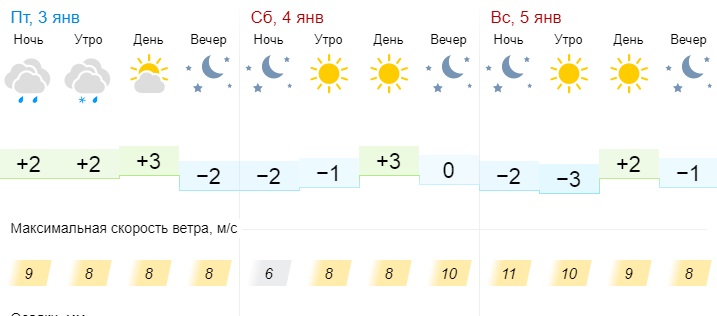 Днём 3 января воздух прогреется до +3°С. Выходные, по прогнозам синоптиков, будут солнечными.