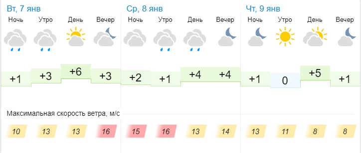 В четверг, 9 января, по прогнозам синоптиков, будет облачно. Температура воздуха днём составит +5°С, ночью +1°С. Ветер 8-13 м/с.