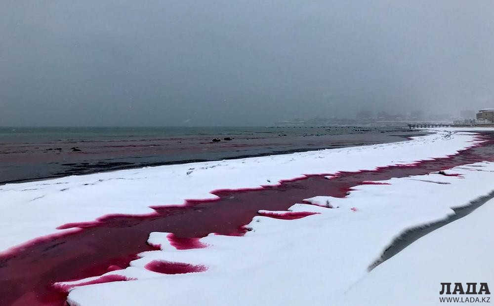 заявили, что загрязнения окружающей среды в данном случае нет. На берегу много тины и водорослей, которые имеют красный цвет, поэтому и вода в море приобретает такой оттенок. Это естественный природный процесс.