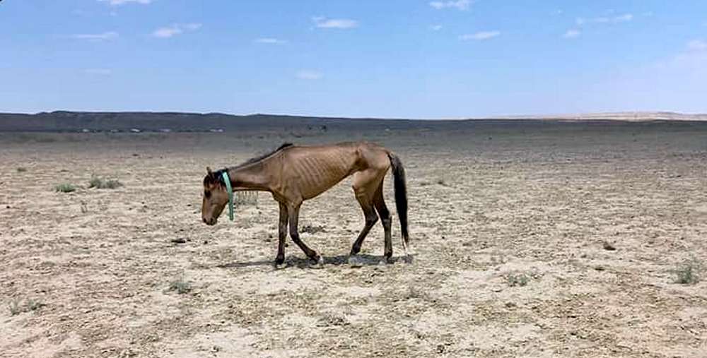 В своём посте Бердимурат Торекенов сообщает, что в нескольких населённых пунктах нашего региона лошади гибнут из-за сильной жары и засухи.
