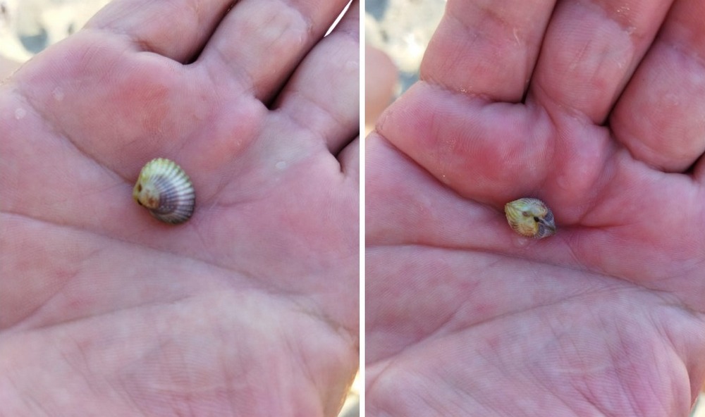 На Тёплом пляже сегодня, 4 июля, также были замечены живые двустворчатые моллюски.