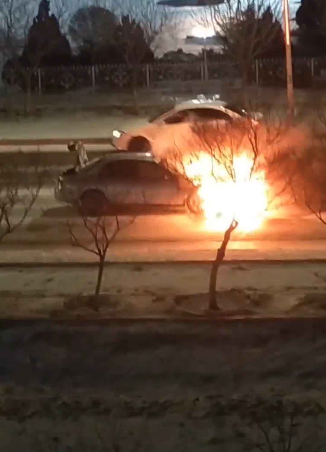 Сообщение о возгорании автомобиля на трассе в микрорайоне «Шыгыс-2» поступило на пульт дежурного ДЧС 9 января в 19:06.