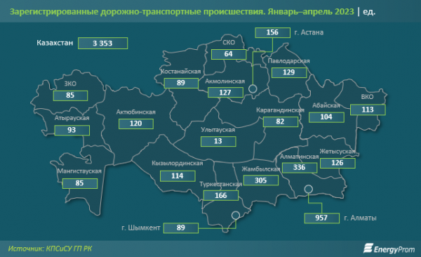 В региональном разрезе ДТП чаще всего регистрировались в Алматы - 957 с начала года. Меньше всего аварий произошло в Улытауской области: всего 13 случаев. В Мангистауской области за этот период случилось 85 дорожных инцидентов.