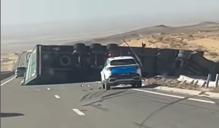 По данным полиции, водитель грузового автомобиля марки Volvo FH не справился с управлением и въехал в придорожный забор, после чего авто опрокинулось.