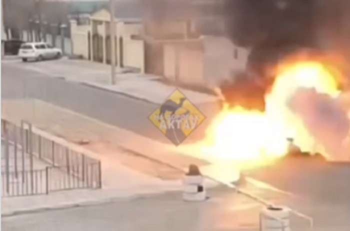 Момент взрыва автомобиля в Актау попал на видео. Его разместили в социальной сети.