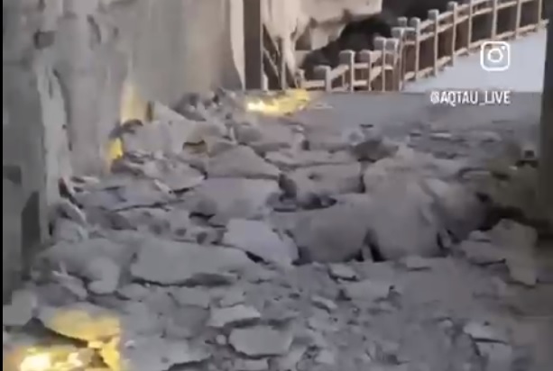 На кадрах видно, что камни раздробили пешеходную дорожку.