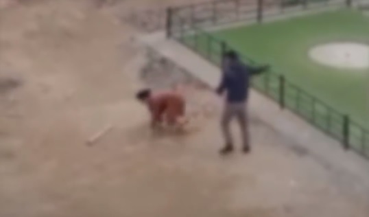 появилась видеозапись, на которой видно, как мужчина бьет и толкает женщину.