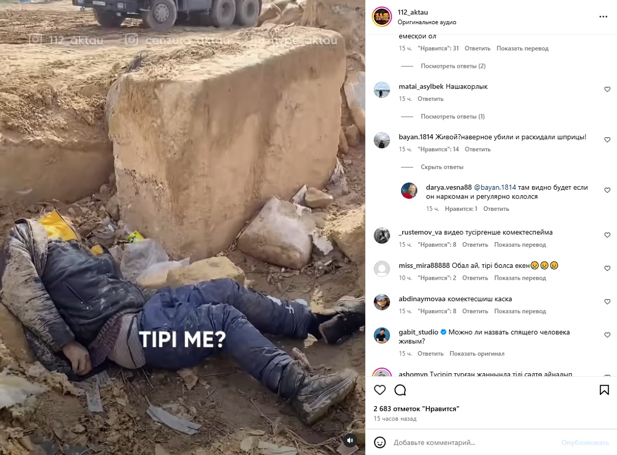 В социальных сетях появилось видео, вызвавшее бурное обсуждение среди пользователей, они пытаются понять, жив ли человек, запечатленный на видео. Редакция Lada.kz обратилась за комментарием в департамент полиции.