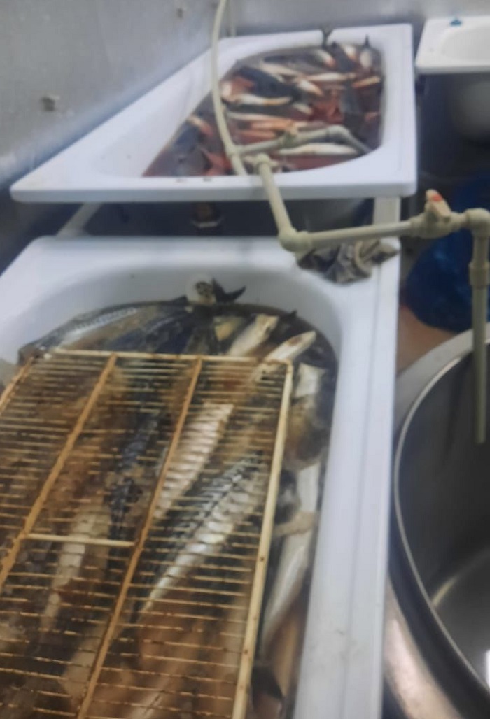 В ведомстве сообщили, ночью 9 февраля 2025 года сотрудники Мунайлинского района обнаружили в одном из помещений морозильную камеру, в которой находилась рыба: 758 штук скумбрии общим весом 345 кг и 79 штук осетра весом 185 кг.