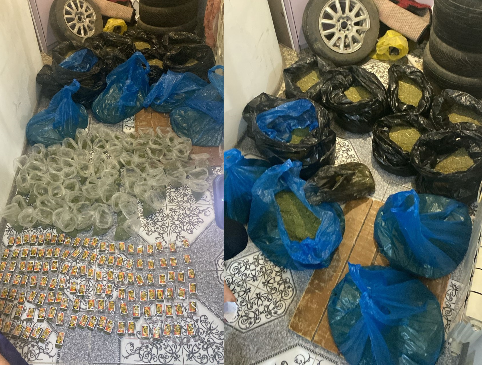 Также в ходе следственных действий в подвальном помещении одного из жилых домов по месту проживания задержанных выявлено тайное хранилище, где находились четыре картонные коробки с мешками марихуаны общим весом более 100 килограммов. Общий объём изъятого наркотического вещества составил 196 килограммов.