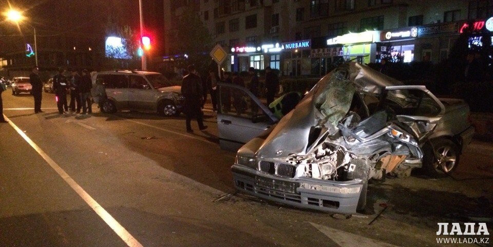По данным ДВД Мангистауской области, дорожная авария произошла по вине водителя BMW. Это также можно судить по ролику, на нем видно, что BMW на большой скорости врезается в автомобиль Mitsubishi Pajero, который остановился на светофоре. От удара джип развернуло и он врезался в автомобиль «ВАЗ-2107», также остановившийся на красный свет.