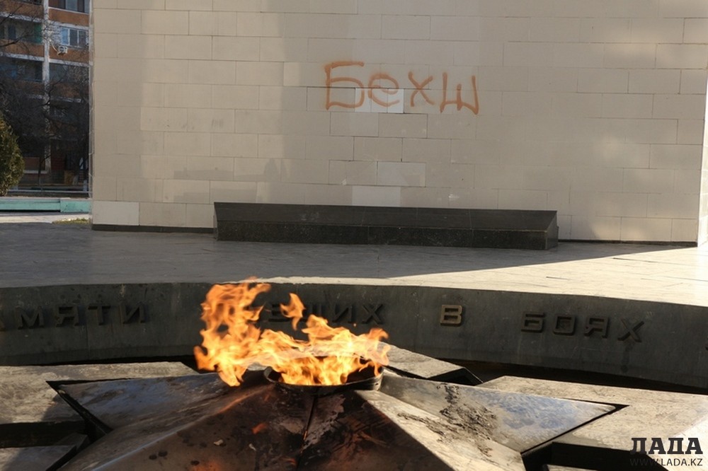 Днем, 3 февраля, надпись на памятнике стерли работники ГКП «Кала Жолдары». Правонарушителя разыскивает полиция.