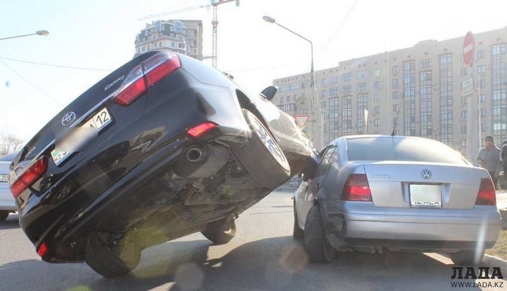 произошло 16 февраля. Автомобиль Toyota Camry после необычного маневра наехал на Volkswagen Jetta. Правое колесо Toyota Camry оказалось в салоне Volkswagen Jetta.