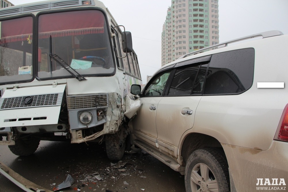 По словам очевидцев водитель внедорожника при выезде из микрорайона, поворачивая налево, не пропустил пассажирский автобус, следовавший по маршруту №2, в результате произошло столкновение.