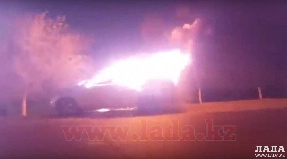 Отын панельдің астынан шыққан ақ түтін болып, капотты ашып массыны айырғанша, отын шыққан. Арттан өртсөндіргішті алып өшіргенше панель жанып бастаған. Онымен өшіре алмаған. Иесі жан жақтағы оқушыларды жолатпаған көлік жарылады деп. Таңертең сол жерде адамдар көп болды, бірақ өшіретін мүмкіндік болмады. Расында 2 жарылыс болды, 1ші баллон кетті сосын бак кетті. Иесі амансау, бұлда бір сынақ. Аллаға шүкір етейік, ешкімнің қаза болмағанына. Көмектескен жігіттерге Алла разы болсын. Бұл жерде ешкімнің кінасы жоқ, теxникалық ақау. Еліміз тыныш, xалқымыз аман болсын.