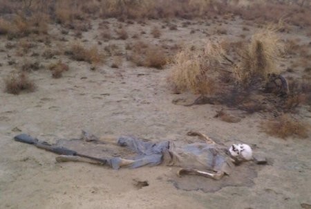- Фото сделано в Казалинском районе, на территории которого и обнаружен скелет. Признаков смерти насильственного характера не обнаружено. При осмотре в кармане одежды обнаружено удостоверение личности на имя жителя Кызылорды, который пропал без вести во время охоты 19 августа 2015 года. Обстоятельства устанавливаются, - сообщили в пресс-службе ДВД Кызылординской области.