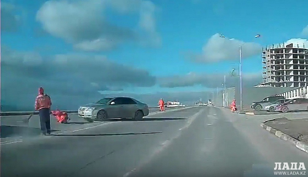 В социальной сети появилось видео, на котором видно, как автомобиль совершил наезд на работницу предприятия «Кала жолдары». Действие происходит на дороге в 15 микрорайоне Актау.