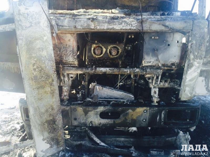 Пожар произошел в Мунайлинском районе 12 февраля в 10:31 у автобазы «Адай». По предварительным данным, возгорание произошло из-за неисправности проводки. Водитель не пострадал.