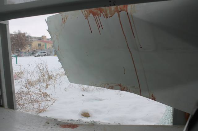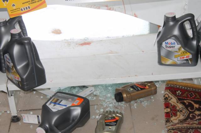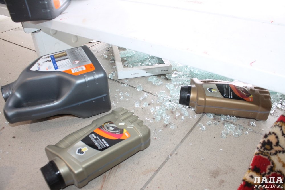 На металлических панелях остались следы крови, есть они и на кассовой ленте. Воры унесли с собой денежный ящик от кассового аппарата, в котором находилось 276 тысяч тенге. По словам хозяина торговой точки, разбитое стекло стоит 300 тысяч тенге.