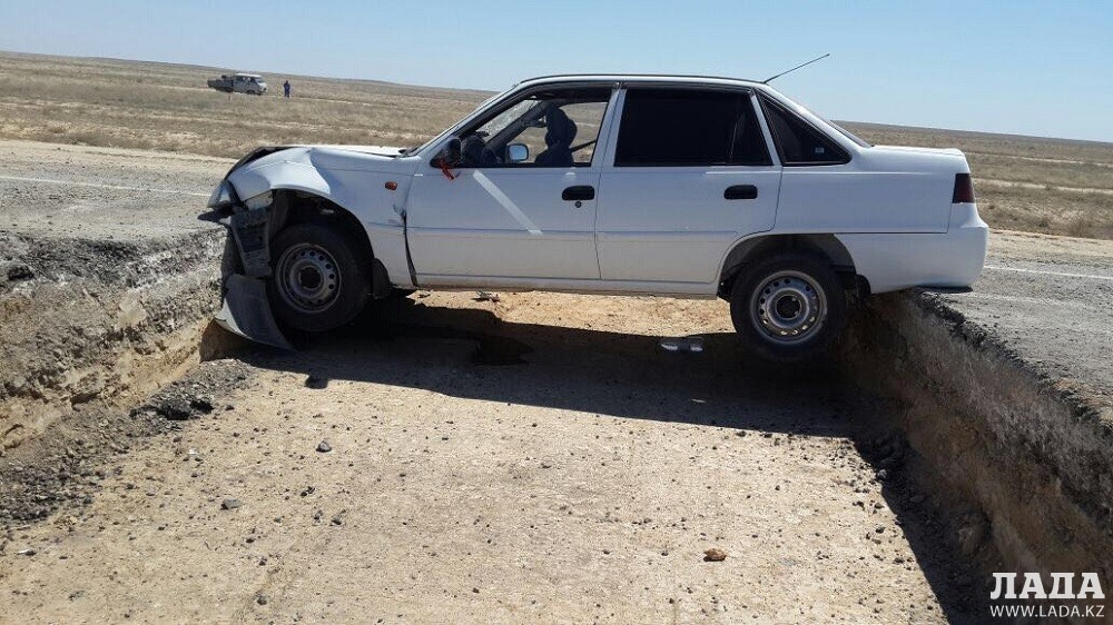 Видео с последствиями ДТП, как рассказал очевидец, снято в 06:00 сегодня, 27 апреля. На кадрах видно, что машина марки Daewoo Nexia попала в разрыв дорожного полотна на 405 километре трассы Бейнеу - Сай-Отес. Данный участок дороги, по сообщению Мангистауского филиала АО НК «Казавтожол». закрыт на ремонт.