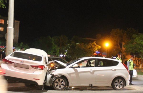 Автомобиль Hyundai Elantra, по словам очевидцев, ехал со стороны областного акимата и поворачивал налево в 12 микрорайон, около дома №17. В это время между 11 и 12 микрорайонами в направлении площади Ынтымак двигался Hyundai Accent. В результате столкновения Hyundai Elantra прижало к столбу автомобилем Hyundai Accent.