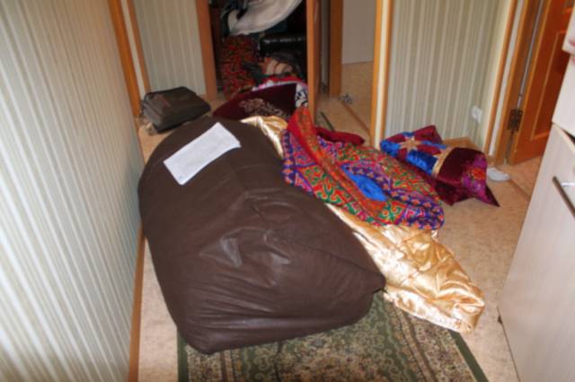 На момент кражи, как рассказал Ермек, в квартире никого не было. Женщины с детьми уже несколько дней с утра уходят присматривать за родственницей в 15 микрорайон, которая перенесла инсульт, и возвращаются домой вечером. Но в эту субботу они вернулись в 14:30. Замок, на который хозяева закрывали дверь, оказался открытым. Зайдя в квартиру, они увидели бедлам.