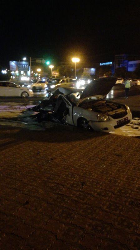 Со слов очевидцев, произошло столкновение двух машин - Toyota FJ Cruiser и Lada Priora. В результате аварии один из автомобилей врезался в столб уличного освещения, машину выкинуло за бордюр.